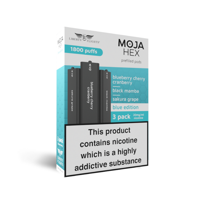 Get fresh and fruity with this pack of replacement pre-filled pods for your MOJA Hex pod kit. This Blue Edition pack contains three pods in the following flavours: