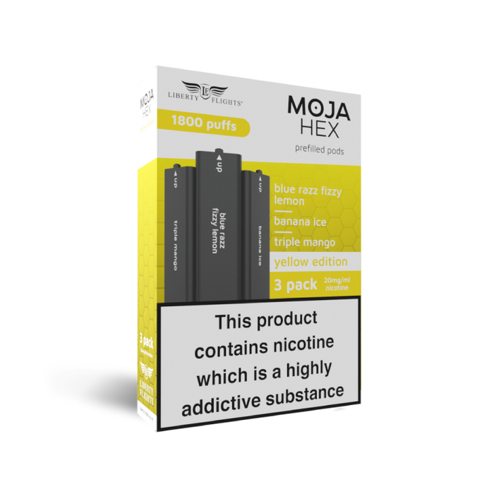 Get fresh and fruity with this pack of replacement pre-filled pods for your MOJA Hex pod kit. This Yellow Edition pack contains three pods in the following flavours: